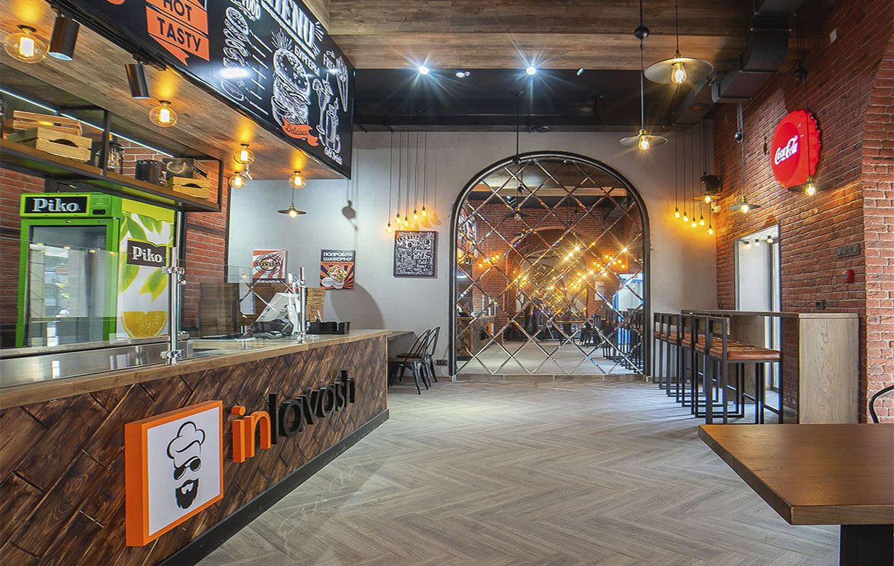 Может располагаться: в фудкортах, торговых центрах, магазинах